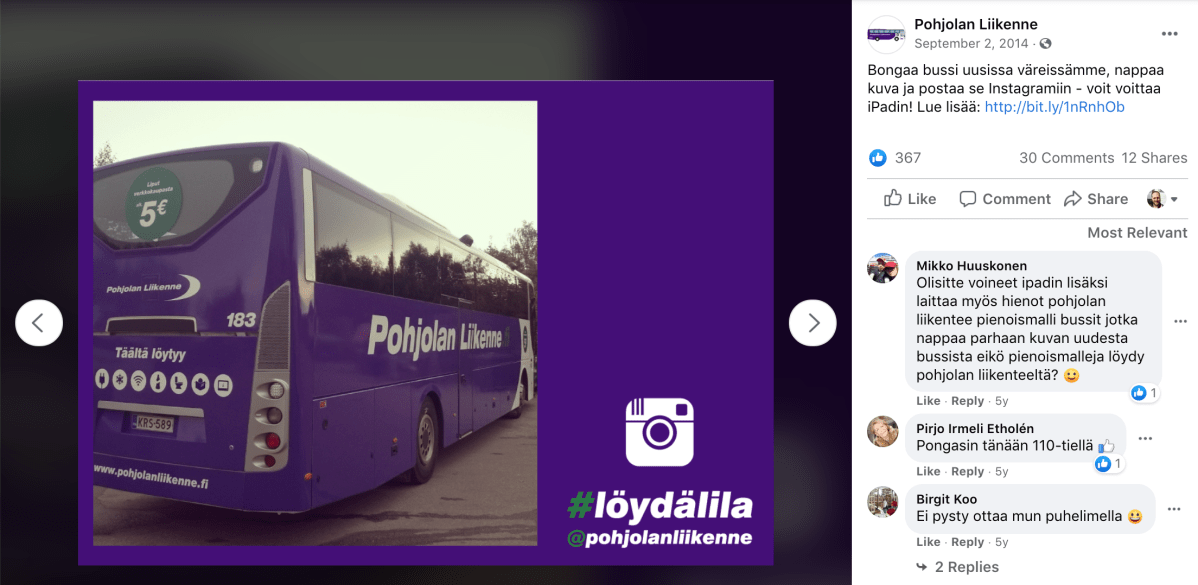 The new purple buses garnered a lot of attention on the motorways of Finland and we put that to use in a Facebook and Instagram competition to spot their shiny new buses on the road.
